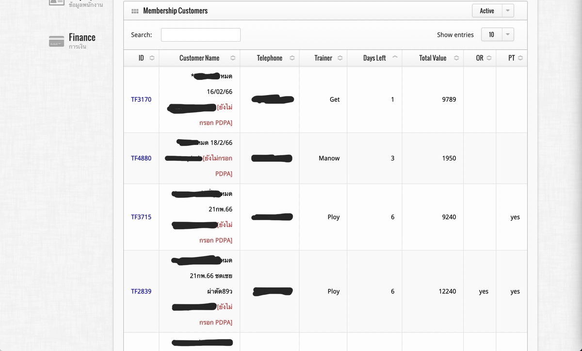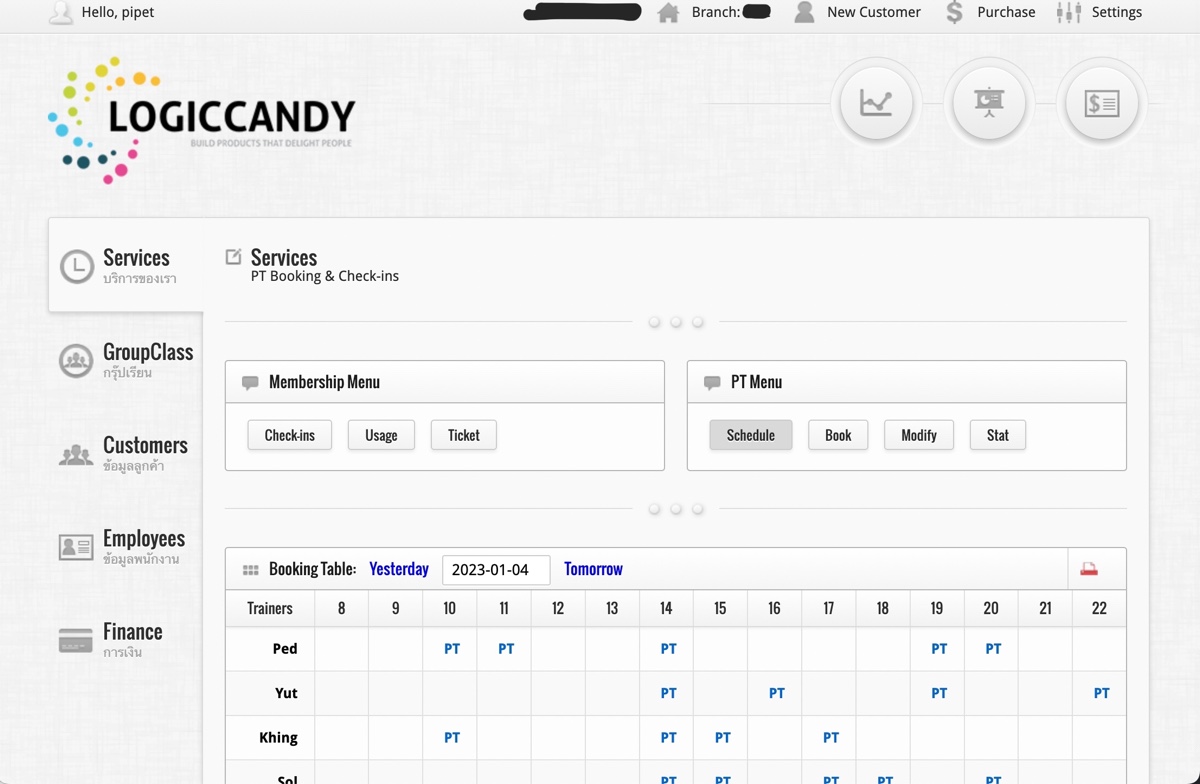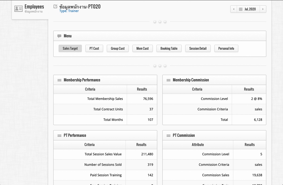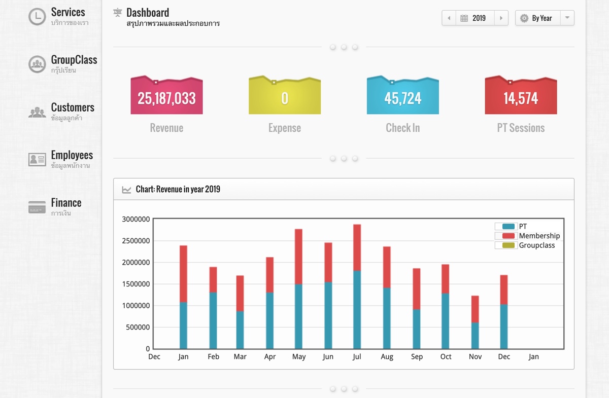 ลงทะเบียนสมาชิก ขายเมมเบอร์และผู้ฝึกสอนส่วนตัว วิเคราะห์การใช้งานและรายได้